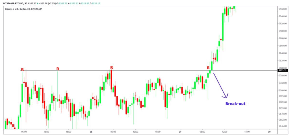 → Một trong những cách có lợi nhất để sử dụng hỗ trợ và kháng cự là sử dụng chúng tại vùng Breakout/Breakdown.